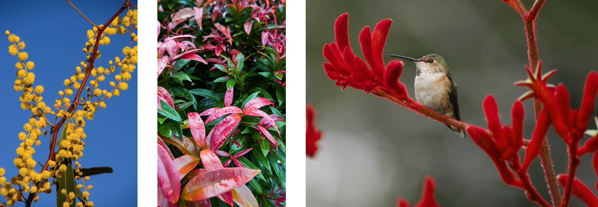 Across all of Australia local grevilleas, callistemons (bottlebrushes), and kangaroo paws bring vibrant colour and attract nectar-loving birds such as honeyeaters and lorikeets. The beauty of these natives is that they are not only striking but also highly adapted to local conditions, often requiring less water than exotic species once established.